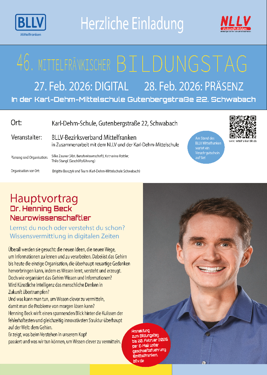 Hier finden Sie den Flyer mit allen wichtigen Informationen zum 46. Mittelfränkischen Bildungstags.